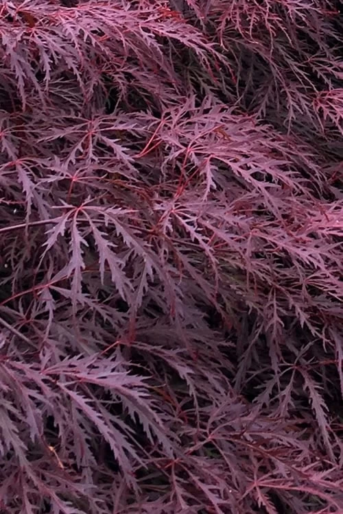 An impressive and unusually large growing red laceleaf Japanese Maple, Inabe Shidare is a fine specimen that can grow upwards of 12 feet tall and wide over time. Inaba Shidare is noted for its more upright form with cascading branches covered in lacy leaves that emerge a magnificent deep purplish red in spring, maturing to a soft purple to red in summer, and finally to a stunning bright red in fall. The 7-lobed, 6′ long leaves are deeply cut and dissected providing a beautiful soft texture in the landscape. Up close, you’ll see attractive, small reddish flowers in spring. A truly wonderful specimen make sure to leave this one ample room to grow!Â