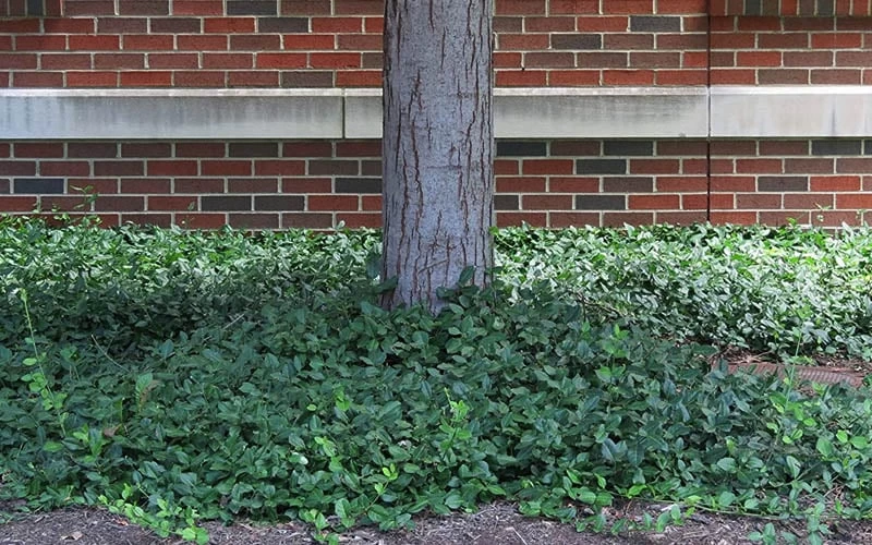 Growing 8 to 10 inches tall with trailing stems that root in as they go, Purple Winter Creeper is an ideal choice as an erosion-controlling groundcover massed on sunny or shady embankments, hillsides and slopes. Because it thrives in full shade, it is perfect for growing under the dense canopies of large shade trees or decks or other overhead structures that block out sunlight. Similar to ivy, creeping fig and climbing hydrangeas, it will also cling to and climb walls that have porous surfaces. Unless you don’t mind frequent pruning to keep the plant in bounds, avoid planting in small, confined spaces. Also a nice accent in container gardens.