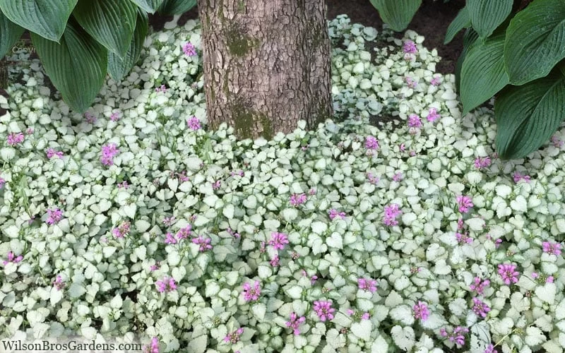 A perfect and very hardy perennial groundcover perfect for brightening up a shady to partly sunny spot, Red Nancy Lamium is a vigorous grower that forms a carpet of stunning silvery-white leaves in garden beds or to cascade over the pots rim in container gardens. As an extra-added bonus, in spring to early summer clusters of cute, rosy red buds open to rosy purple flowers that are perched just above and contrast beautifully with the foliage. A perfect selection for white theme gardens!
