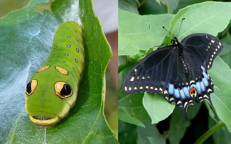 If you’re looking for plants that attract butterflies and birds, you may want to try the Spicebush, a wonderful and easy-to-grow North American native flowering shrub that produces flowers for the butterflies and berries for the birds, especially vireos, tanagers, robins and thrushes. The butterflies like this host plant so much that the Spicebush Swallowtail Butterfly was name after it! But every year it’s the Spicebush caterpillar that we look forward to seeing most. It doesn’t get much cuter than this little green guy with big eyes! 🙂