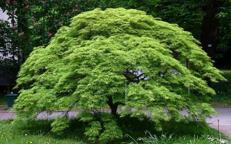 Viridis is a beautiful green lace leaf Japanese Maple with a mounding form and graceful cascading branches. The branches are covered with finely dissected leaves that emerge a fluorescent green in spring maturing to light green in summer and then bright shades of orange, red and yellow in fall. At 6 to 8 feet tall and wide, Viridis makes for a stunning focal point specimen in the landscape or potted patio tree.